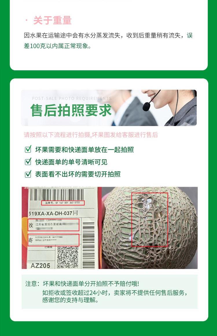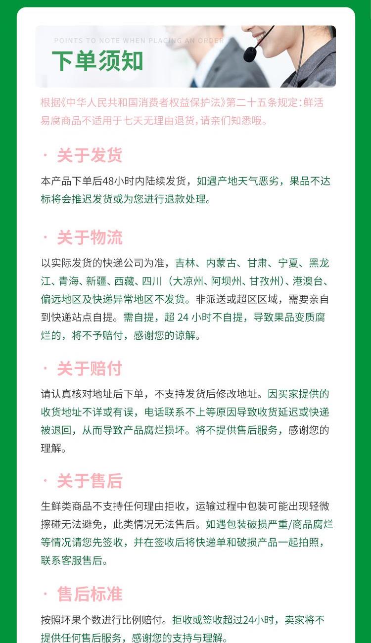 6、售后標準:壞果比例達50%及以上,整件進行補發;壞果比例小于50%的,按比例進行賠付。