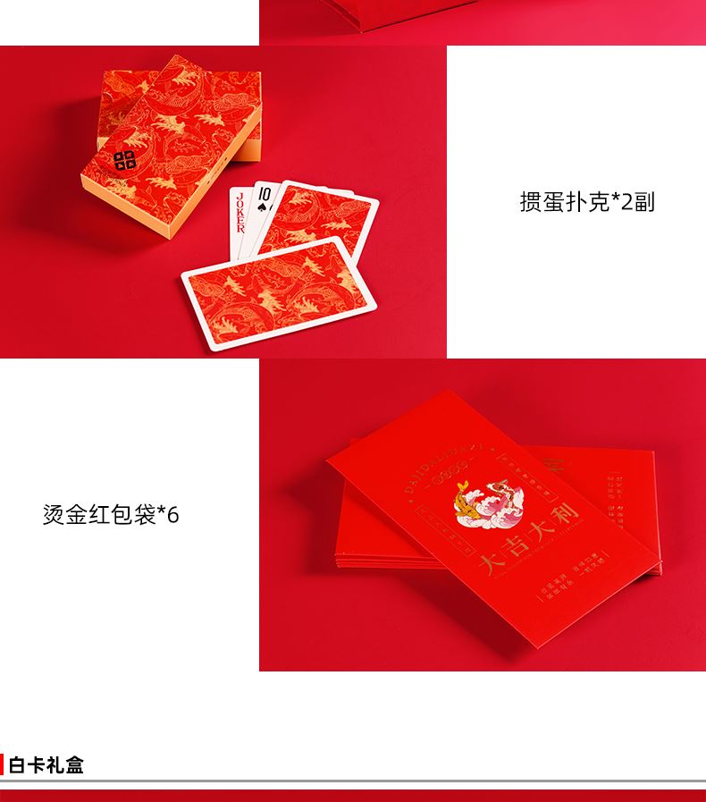 配置:保溫杯+臺歷+撲克*2+紅包袋*6 型號:NF13 材質:304不銹鋼+金屬+紙 尺寸:保溫杯300mL 臺歷215*125mm 撲克99*62mm 紅包袋168*88mm 包裝:白卡禮盒(225*190*92mm)