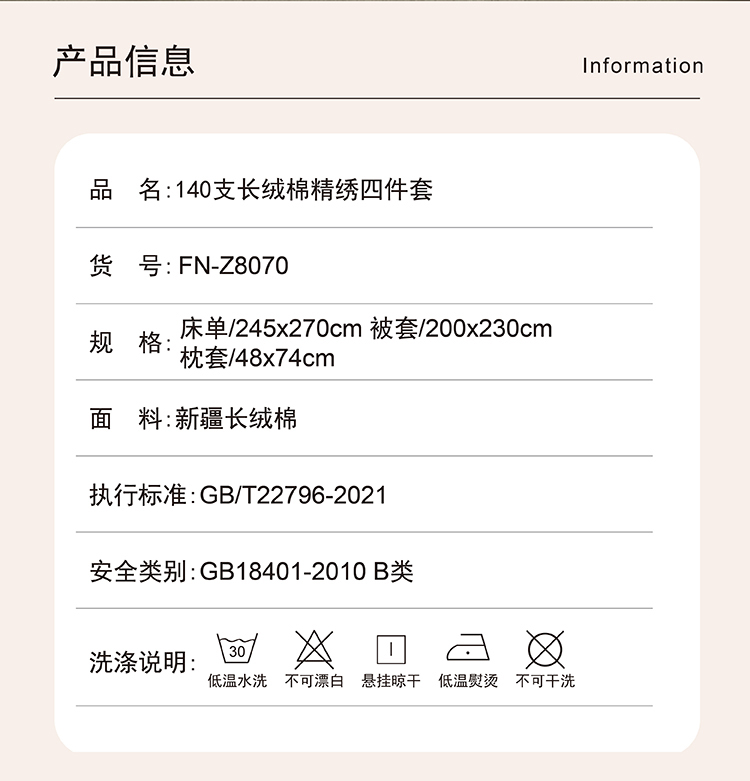 芳恩140支長絨棉精繡四件套FN-Z8070 芳恩140支長絨棉精繡四件套FN-Z8070