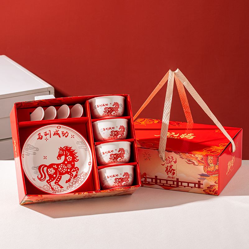 馬年窗花碗禮,把新春福氣捧在手心,當(dāng)馬年的祥瑞遇上傳統(tǒng)剪窗花工藝,這組碗具禮盒便成了新春里別致的心意。那碗身的駿馬剪紙,紅得熱烈又鮮活,似是從民俗窗花里躍出,帶著“馬到成功”的美好祈愿,將年節(jié)的紅火與祝福都盛了進(jìn)來(lái)。無(wú)論是自家添新歲,還是贈(zèng)予親友賀新春,這一份融了傳統(tǒng)剪紙藝術(shù)與馬年吉兆的禮,都能讓年味在餐桌間,在心意里,悄然升溫。