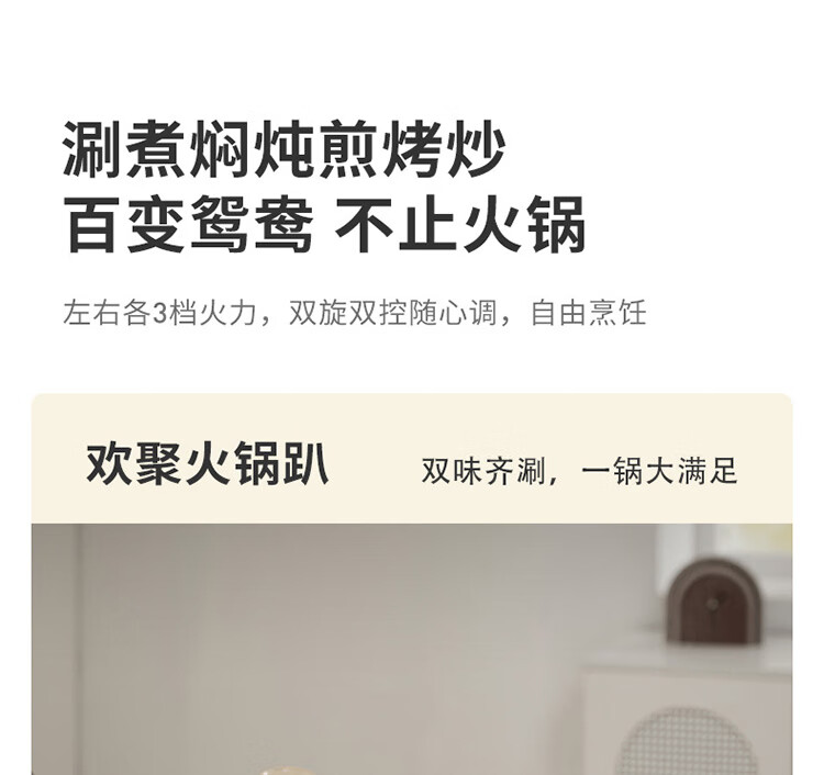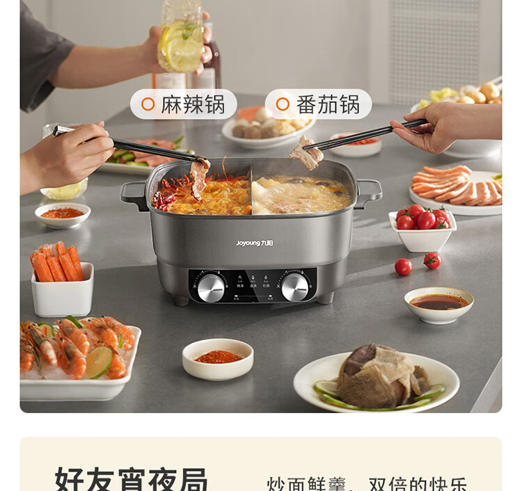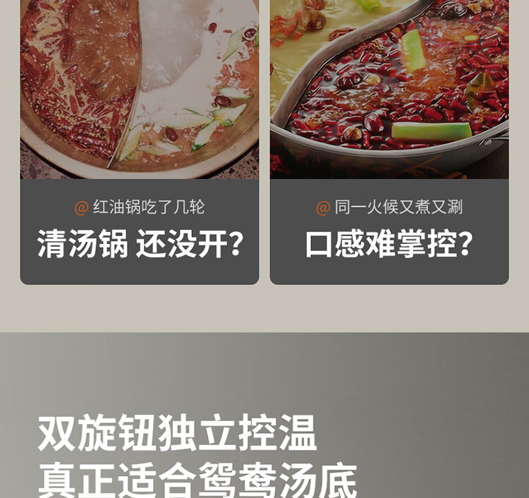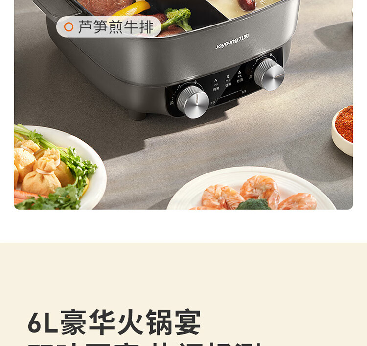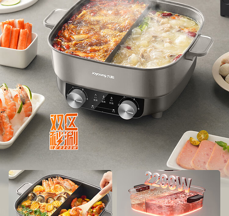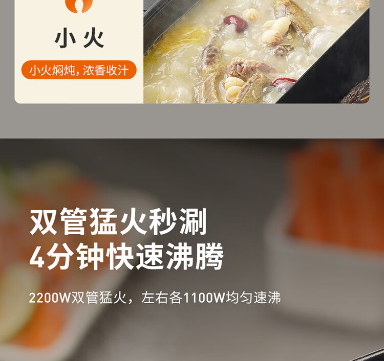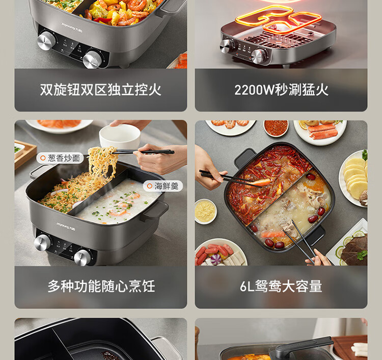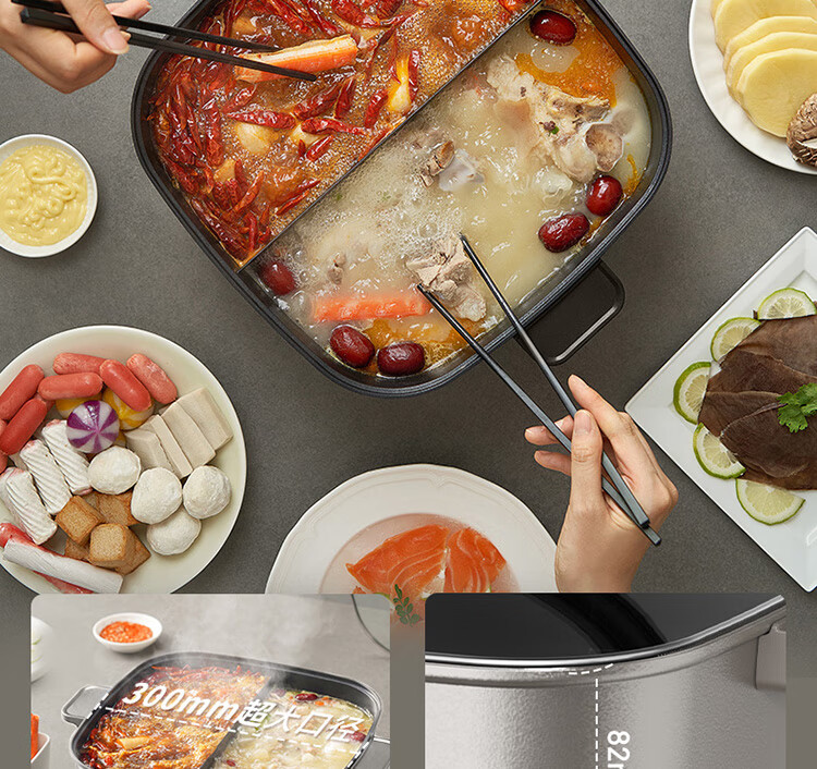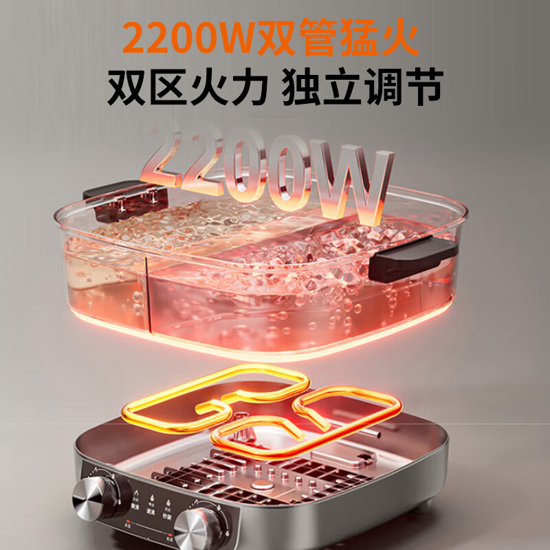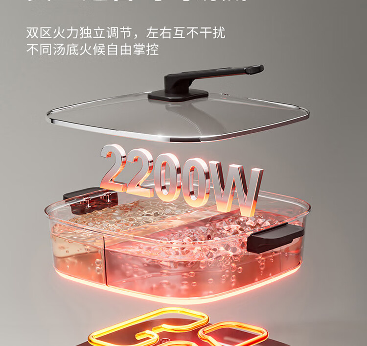 82mm鍋身 6L大容量 不粘易清洗 2200W大功率 雙旋扭功能:雙區秒涮