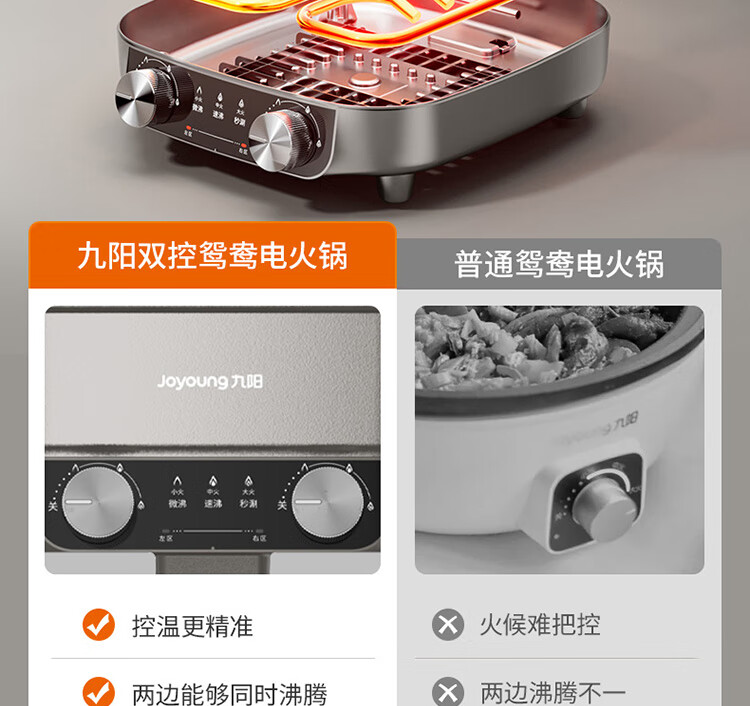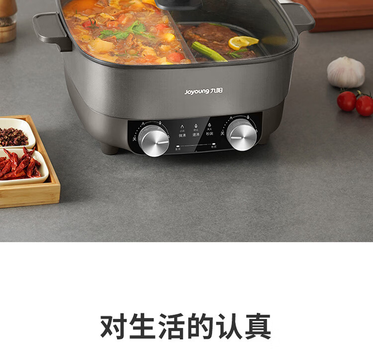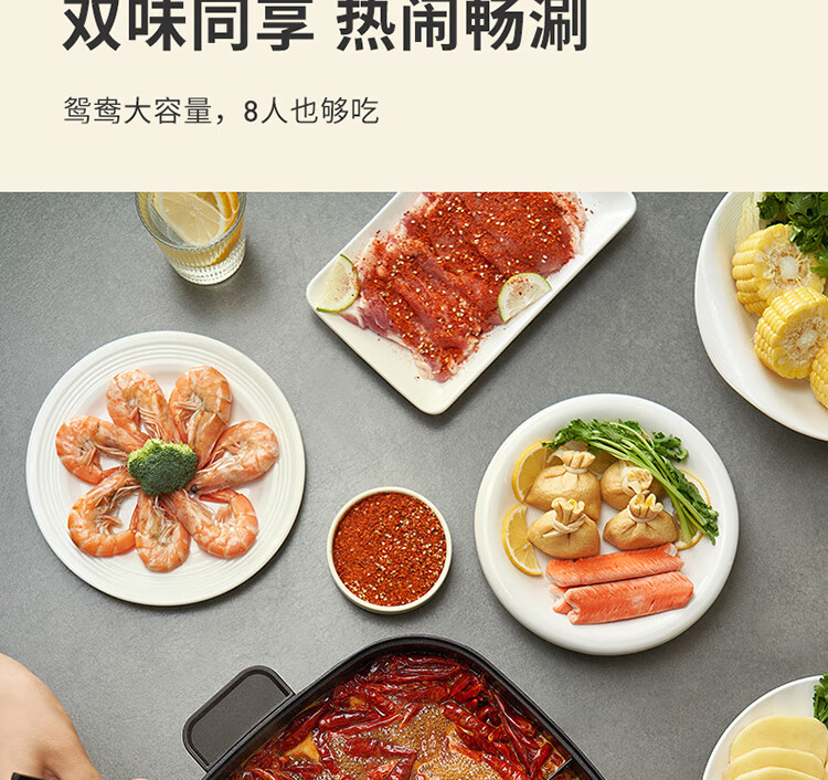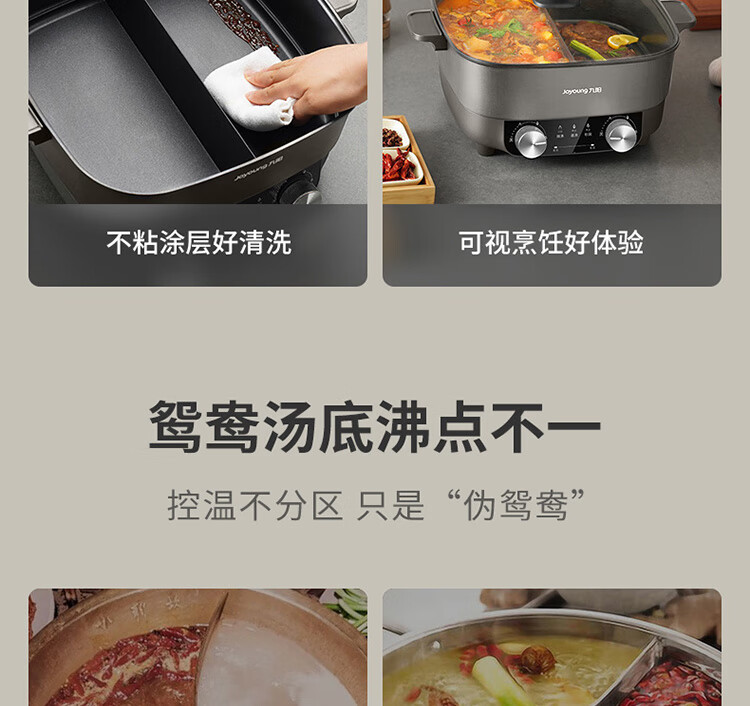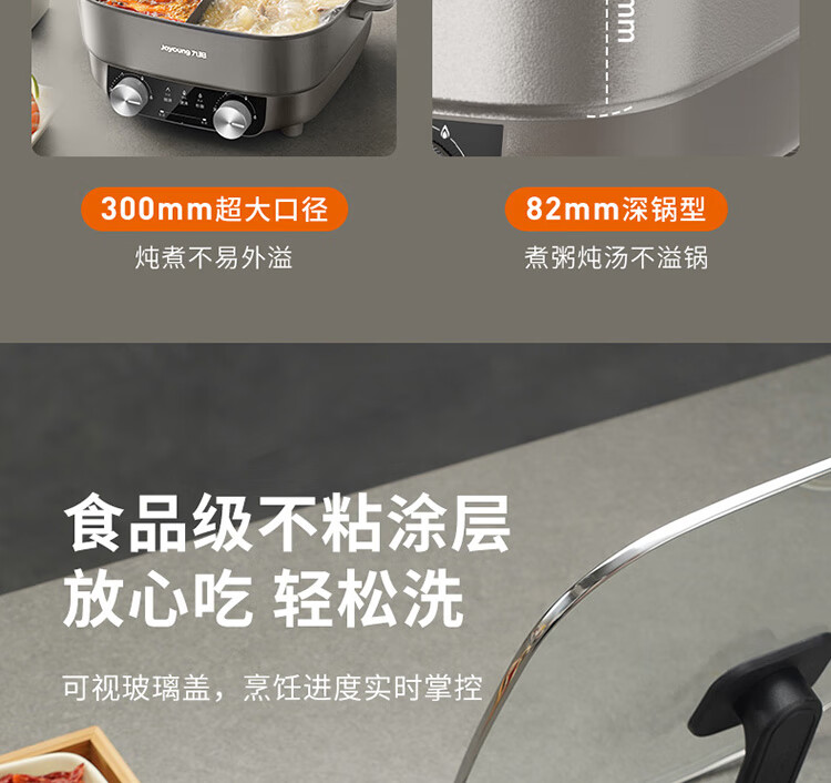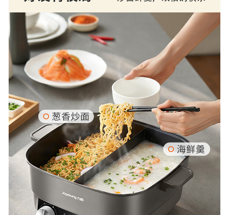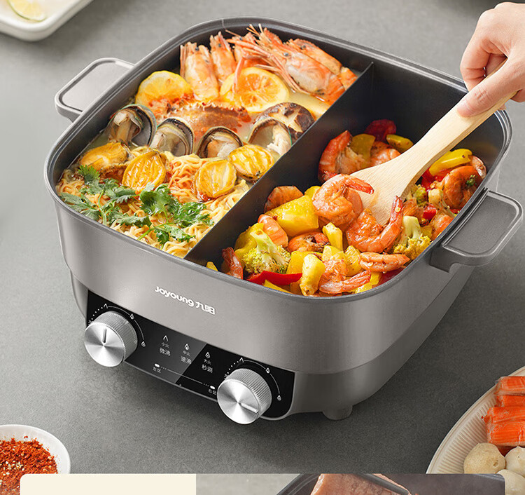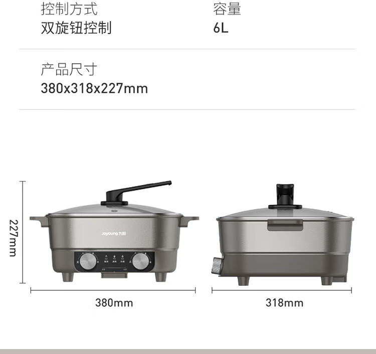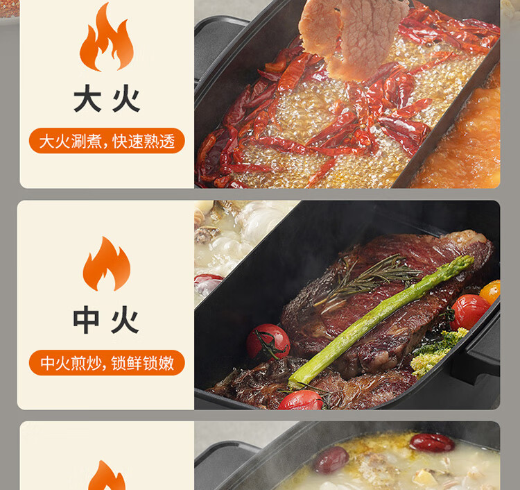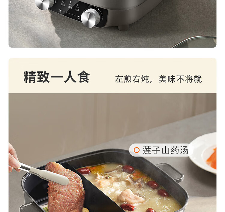82mm鍋身 6L大容量 不粘易清洗 2200W大功率 雙旋扭功能:雙區秒涮