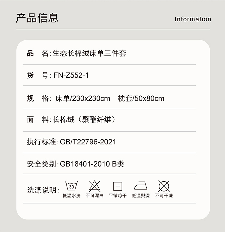 芳恩FN-Z552-1生態(tài)長(zhǎng)棉絨床單三件套