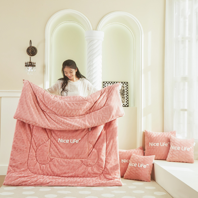 億瞬間牛奶絨雕花抱枕被