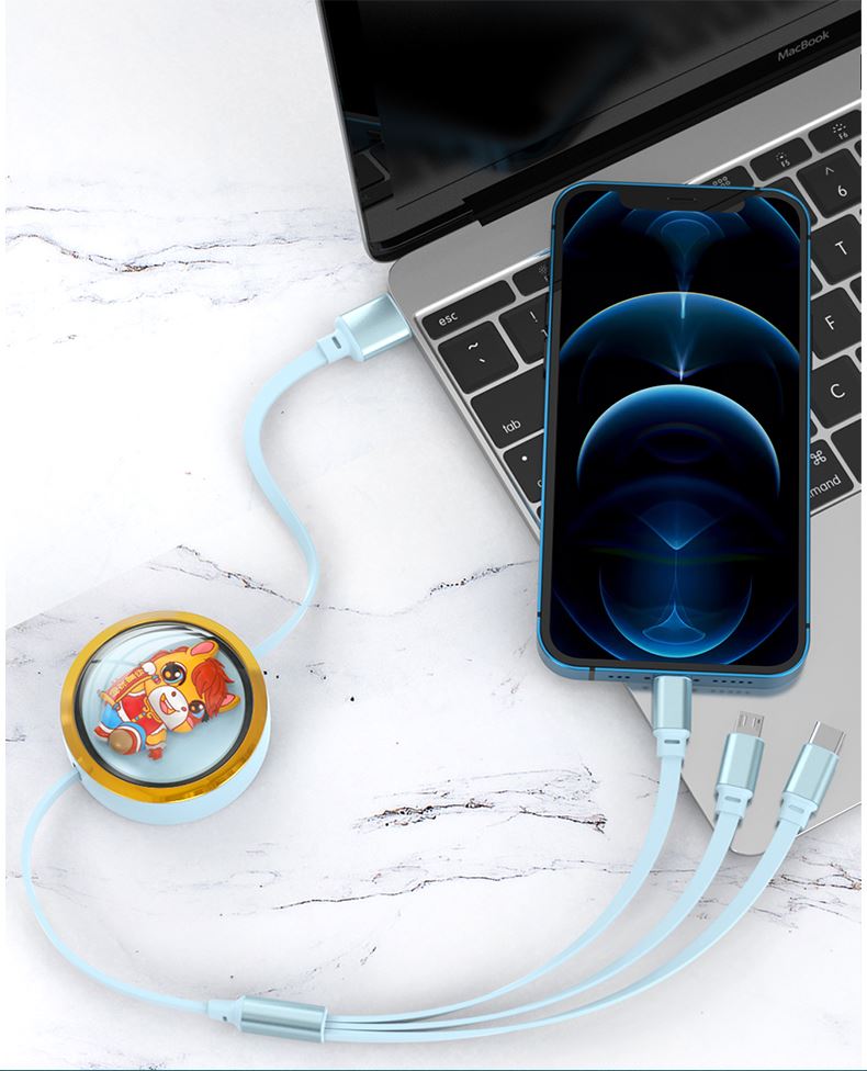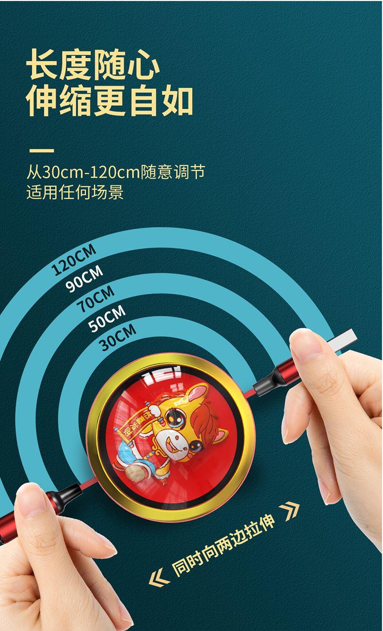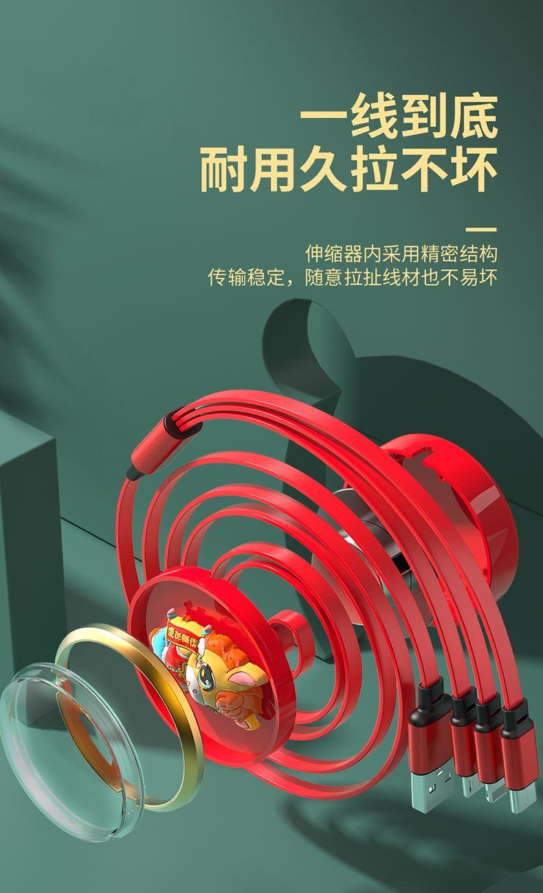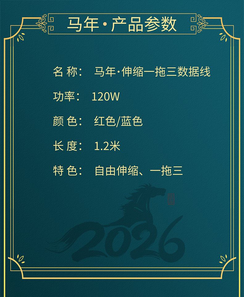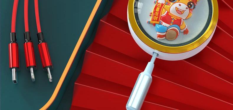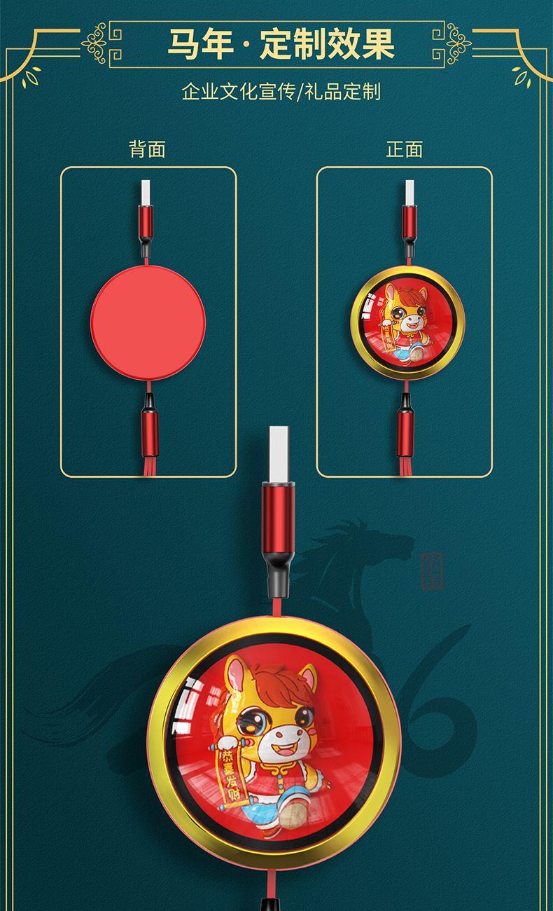 66W超級快充,充電更快 馬年元素造型,一體成型充電頭 三種接口滿足各種手機 1.2米長度設計,使用方便 編織線耐磨耐用,不易折斷