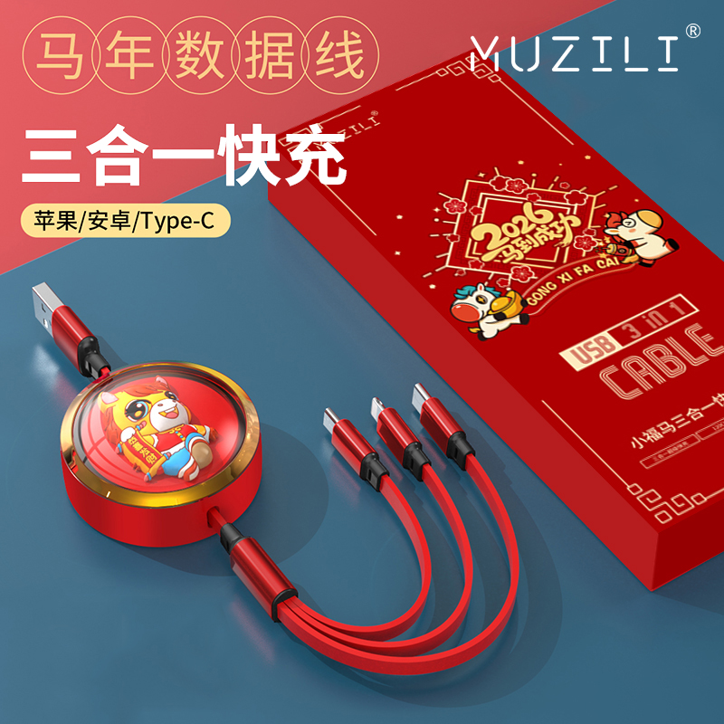 MUZILI·小財馬66W一拖三超級快充生肖數據線