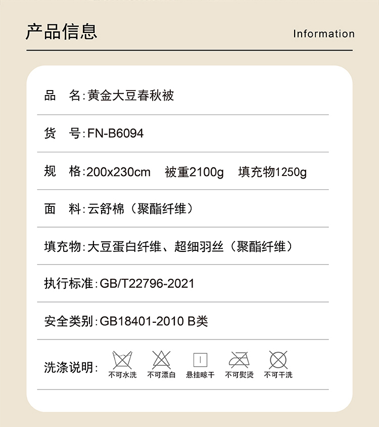 芳恩FN-B6094黃金大豆春秋被200x230cm 禮品已成功加入PPT!