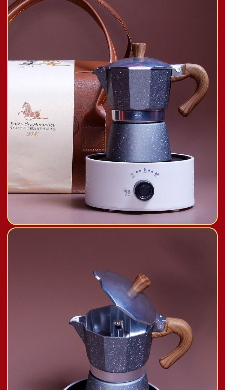 青錦2026【摩卡時光】手磨咖啡機摩卡壺陶瓷杯皮質手提禮包 禮品已成功加入PPT!