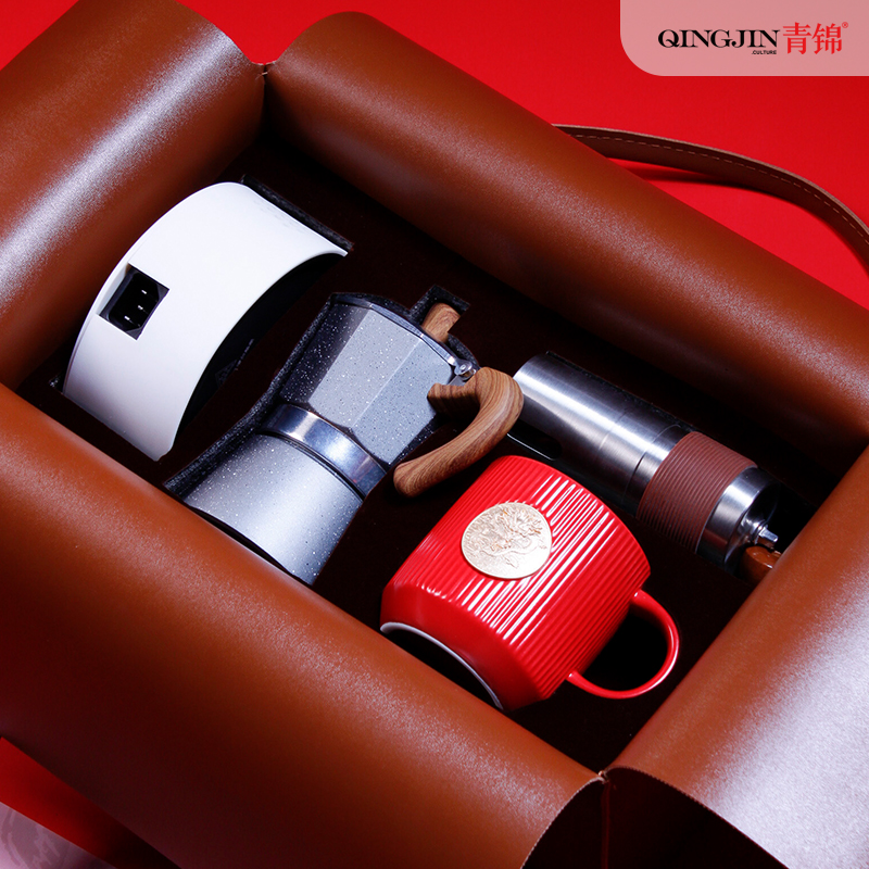 青錦2026【摩卡時光】手磨咖啡機摩卡壺陶瓷杯皮質手提禮包 青錦2026【摩卡時光】手磨咖啡機摩卡壺陶瓷杯皮質手提禮包