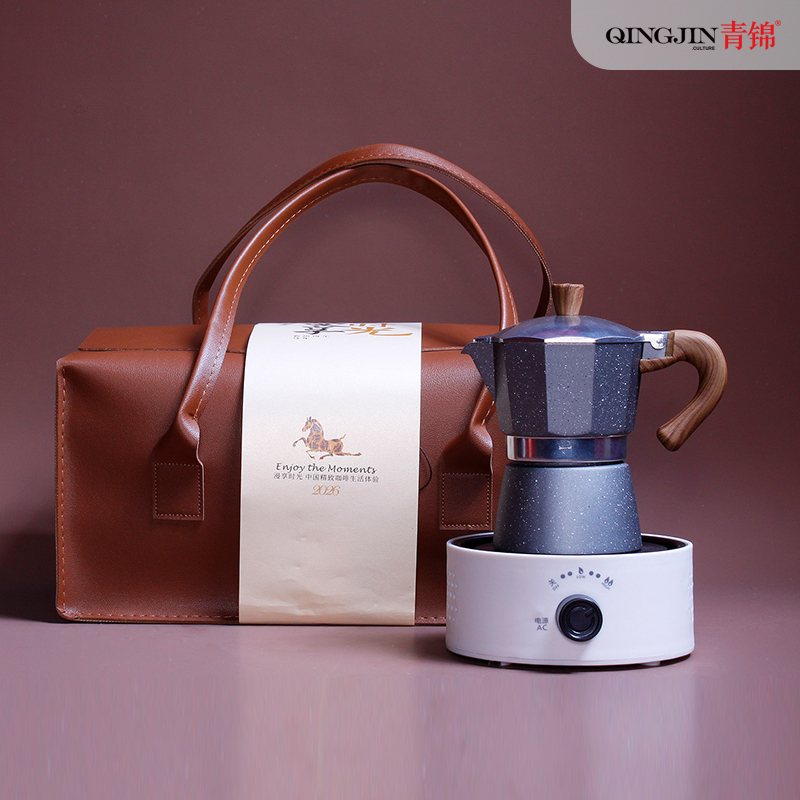 青錦2026【摩卡時光】手磨咖啡機摩卡壺陶瓷杯皮質手提禮包