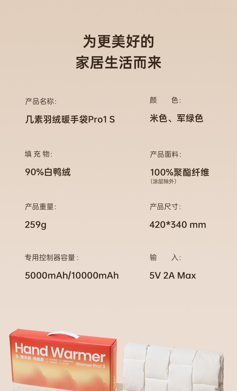 幾素羽絨暖手袋WarmerPro1S(5000mAh)