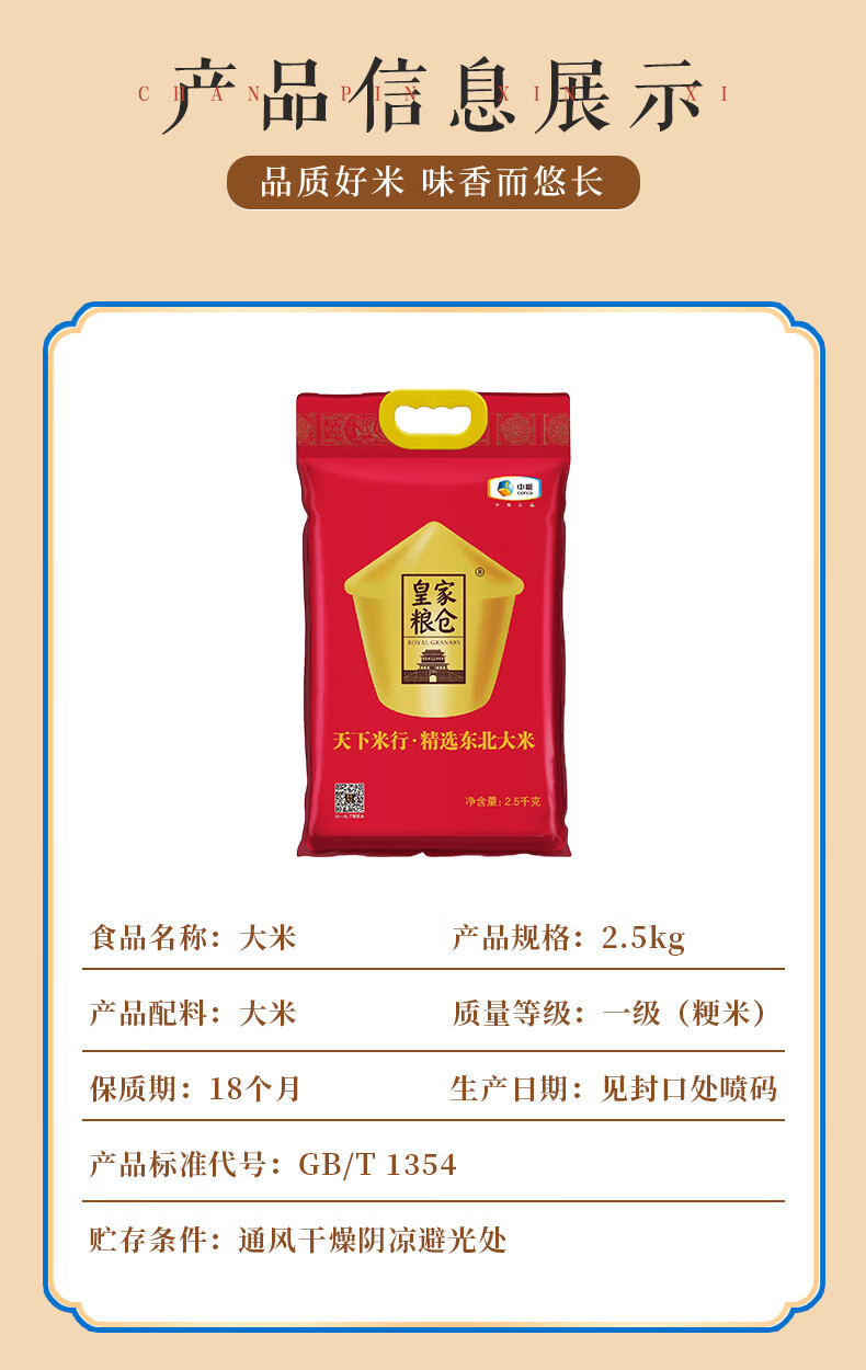 中糧皇家糧倉天下米行精選東北大米2.5kg