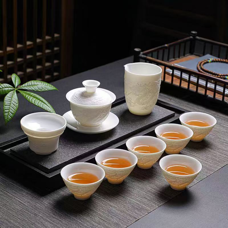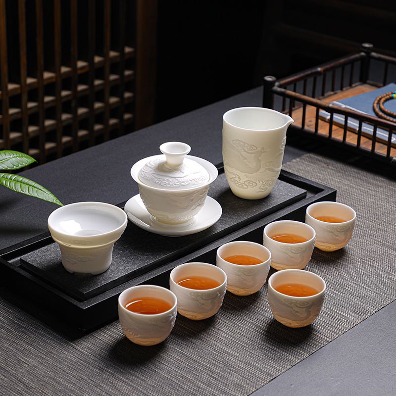 鵬翼13頭龍鳳紋浮雕旅行茶具套裝
