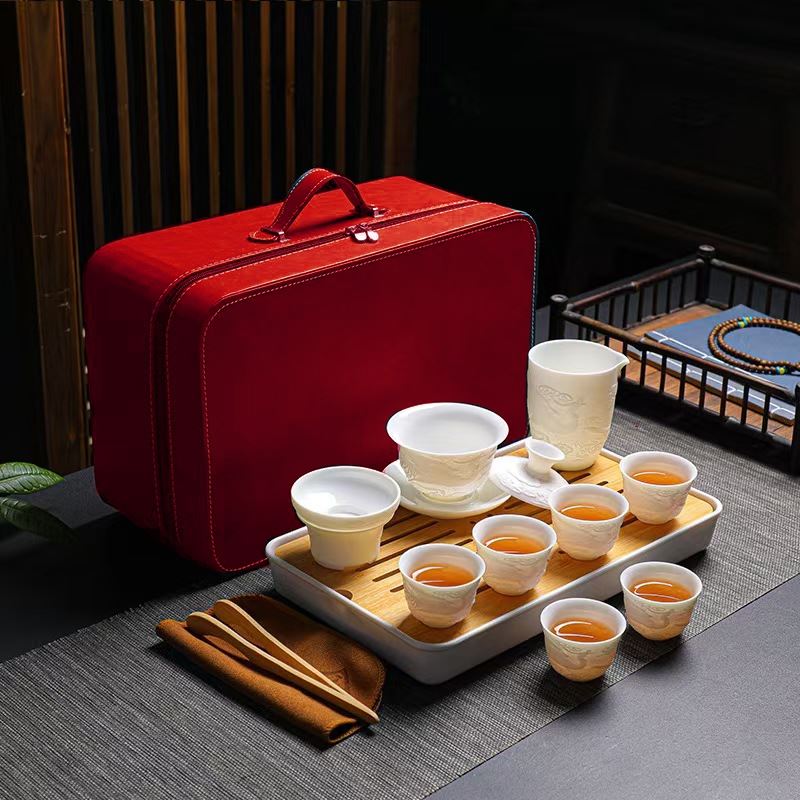 鵬翼13頭龍鳳紋浮雕旅行茶具套裝 鵬翼13頭龍鳳紋浮雕旅行茶具套裝