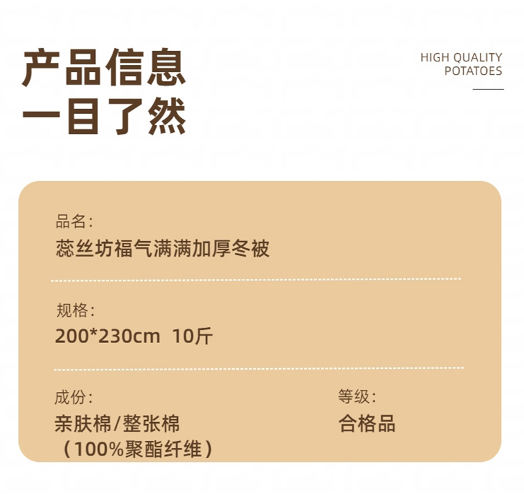 蕊絲坊家紡福氣滿滿加厚冬被200X230cm(10斤) 禮品已成功加入PPT!