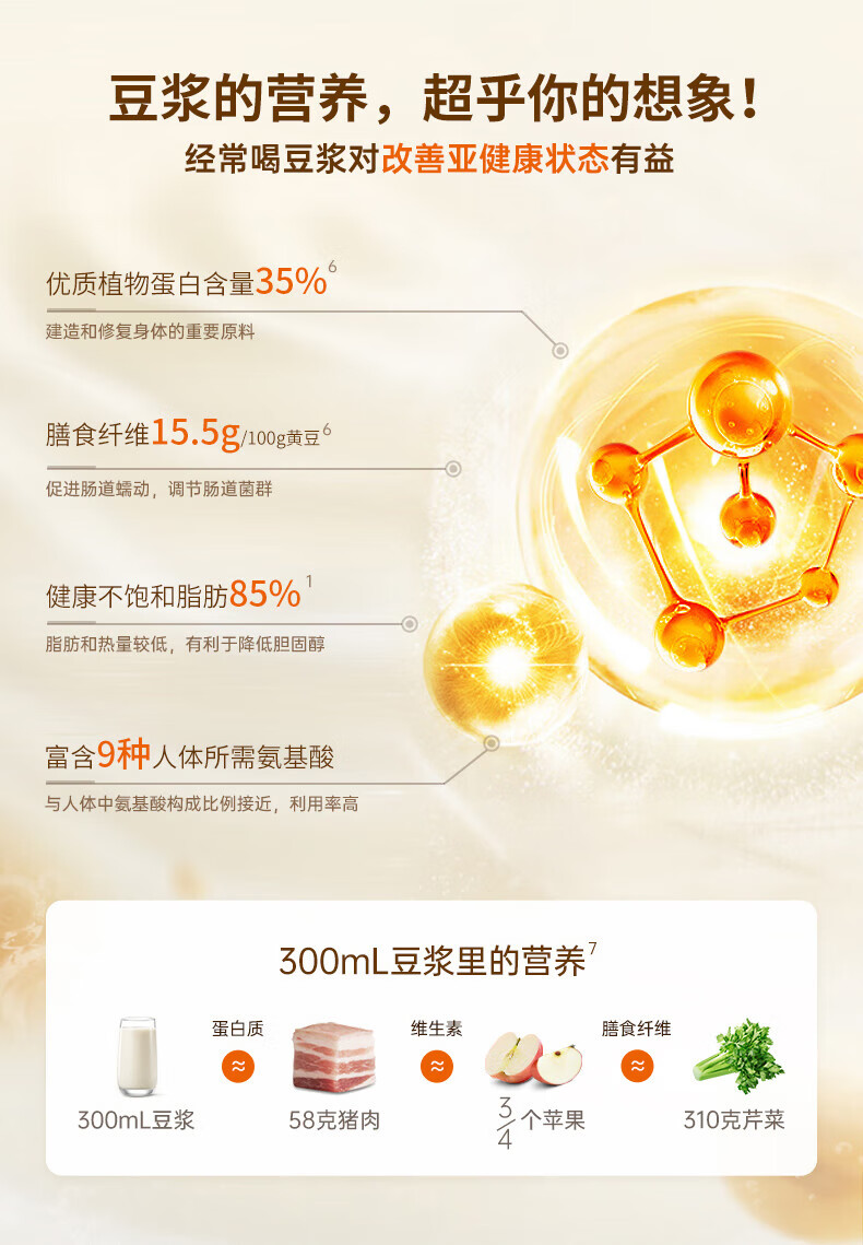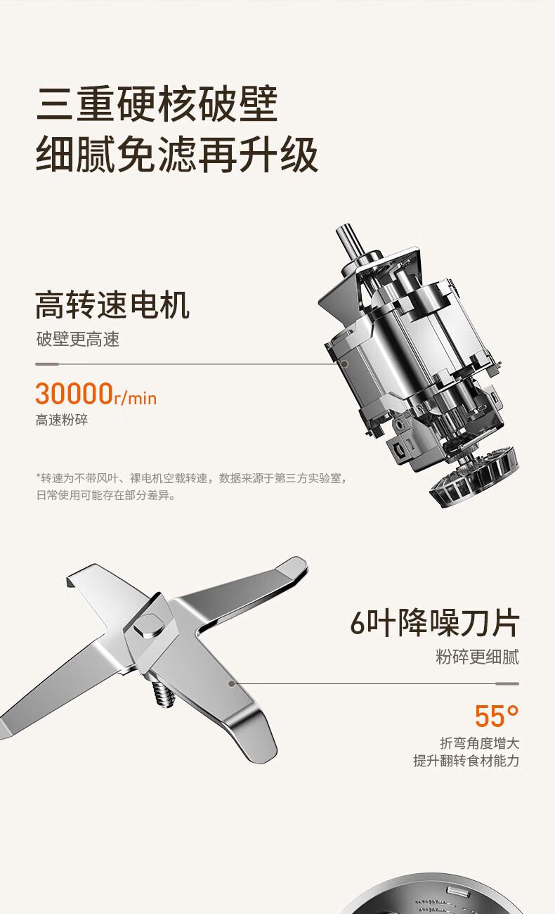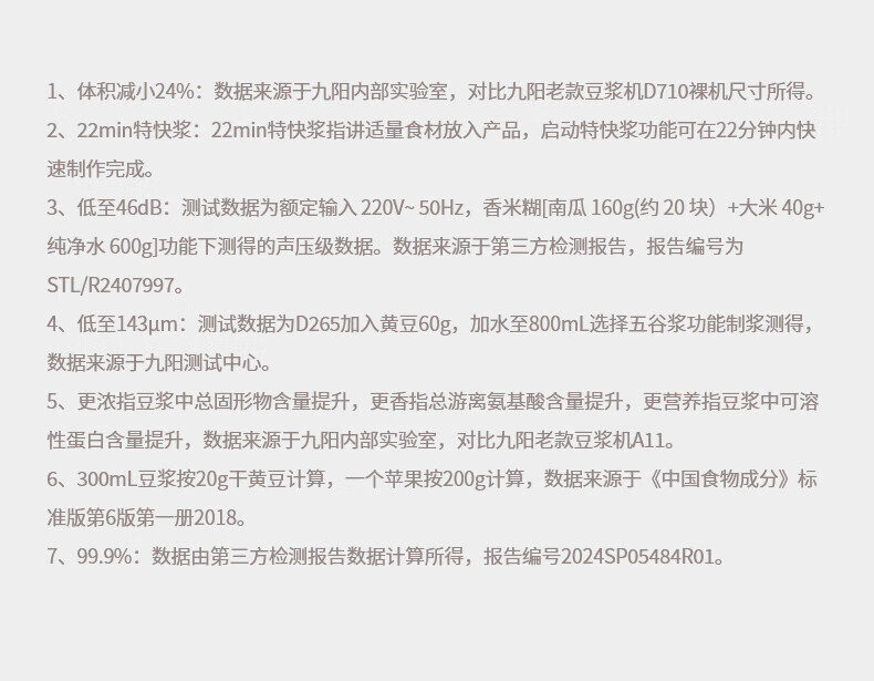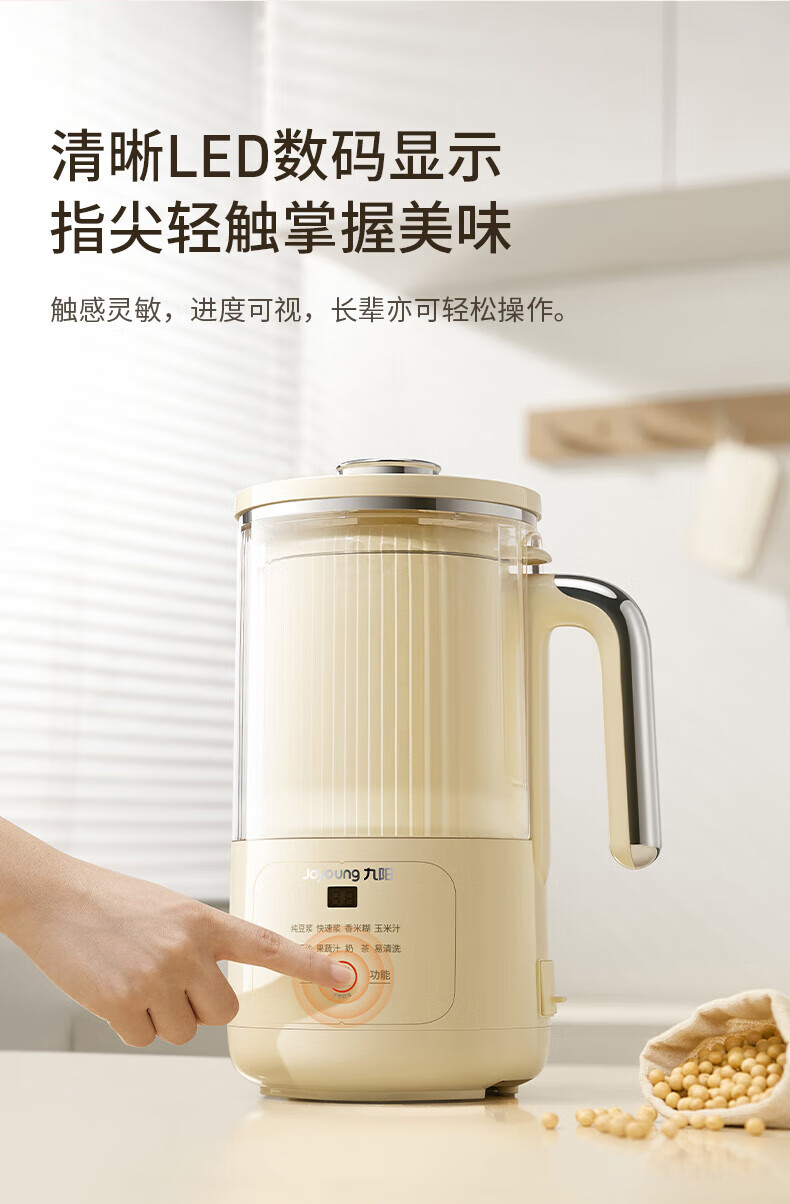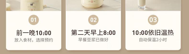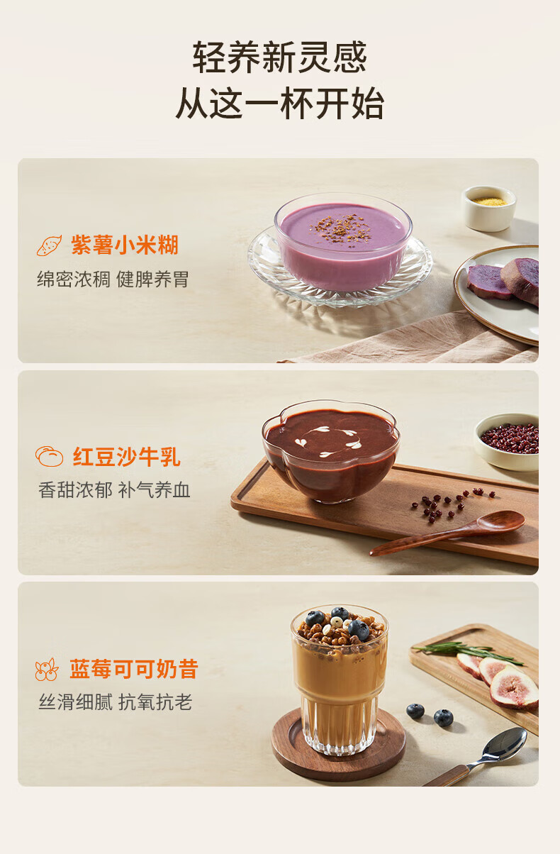 噪音低至45dB; 小巧不占地,簡易好拆裝; 22min特快漿; 細(xì)膩免濾,營養(yǎng)香濃; 雙口感可調(diào) 容量:1000mL 單臺包裝尺寸:245L*245W*400Hmm