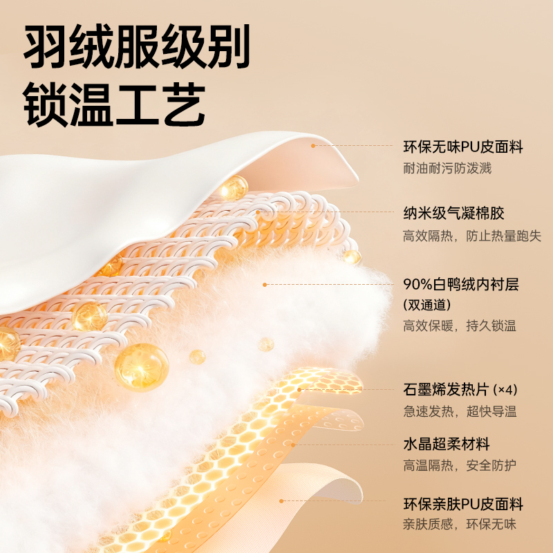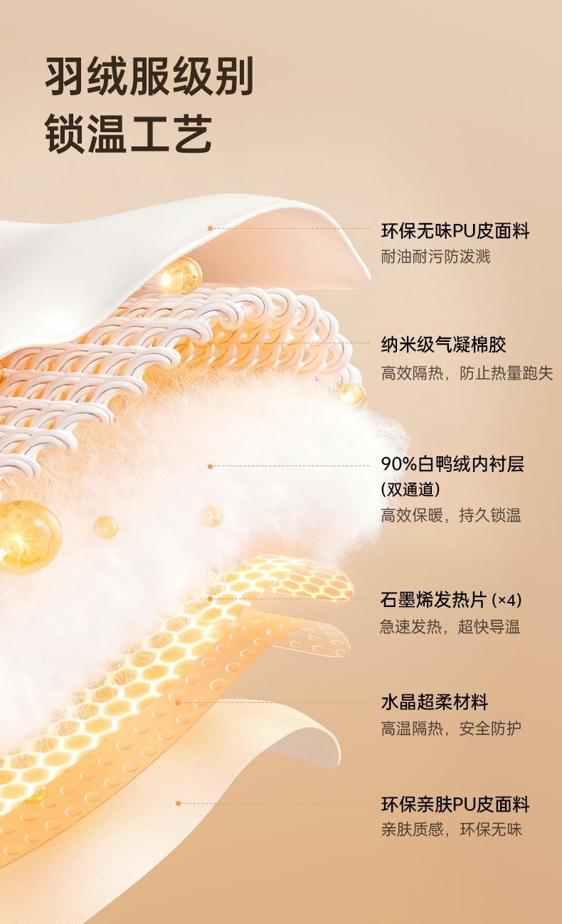極速升溫,雙面發熱,含絨量90% 六檔調溫,智能數顯溫度,邊沖邊用不斷電 暖手/腰/腹/背多場景使用,可水洗清潔 產品材質:環保無味膚感PU皮+聚酯纖維+白鴨絨 產品顏色:米白、軍綠色 電池容量:10000mAh(DC版充電口) 續航時間:7-18H