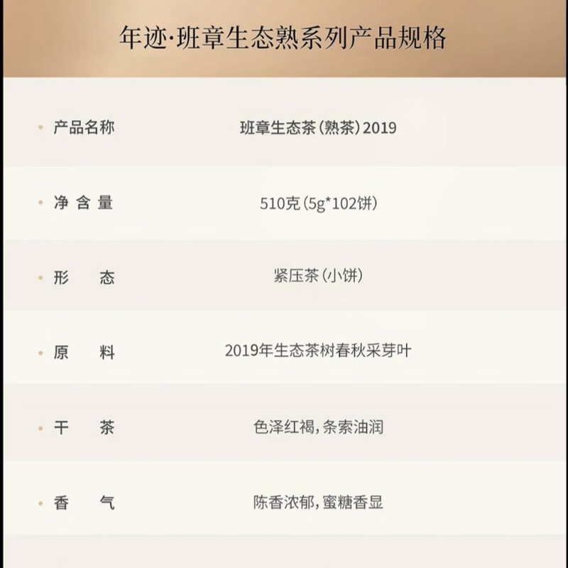 年跡 · 年份班章生態(tài)茶(熟茶)2019