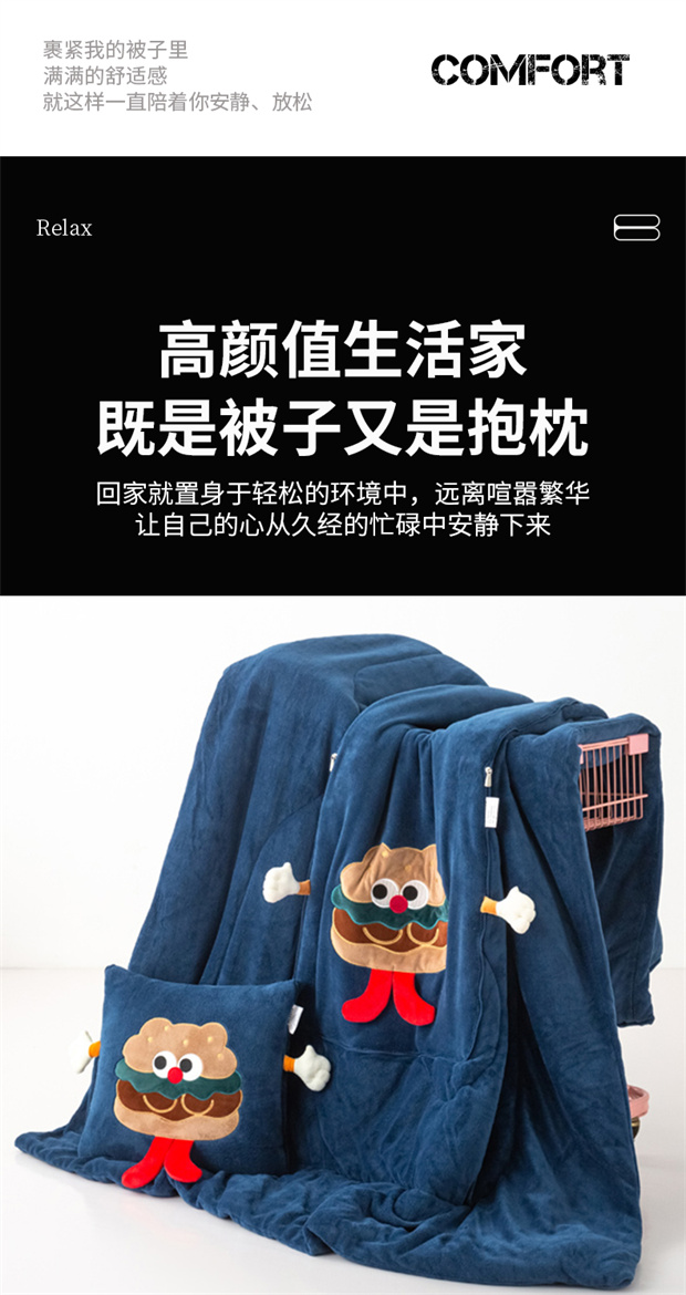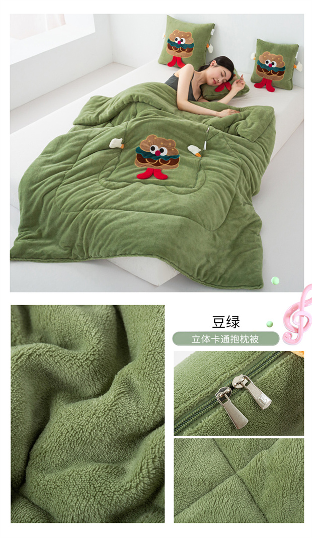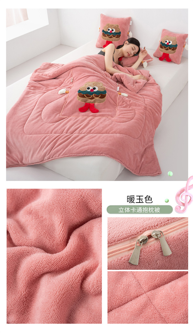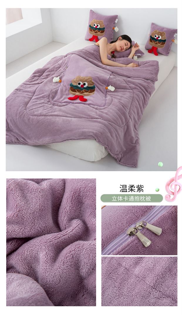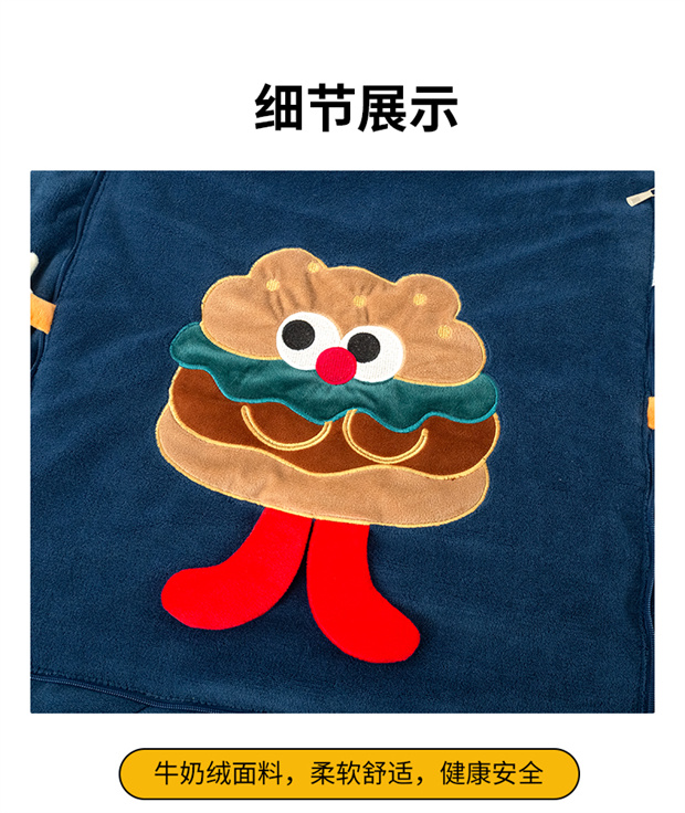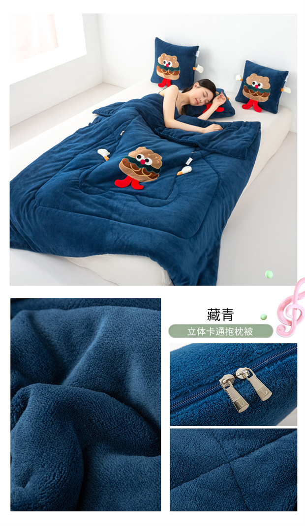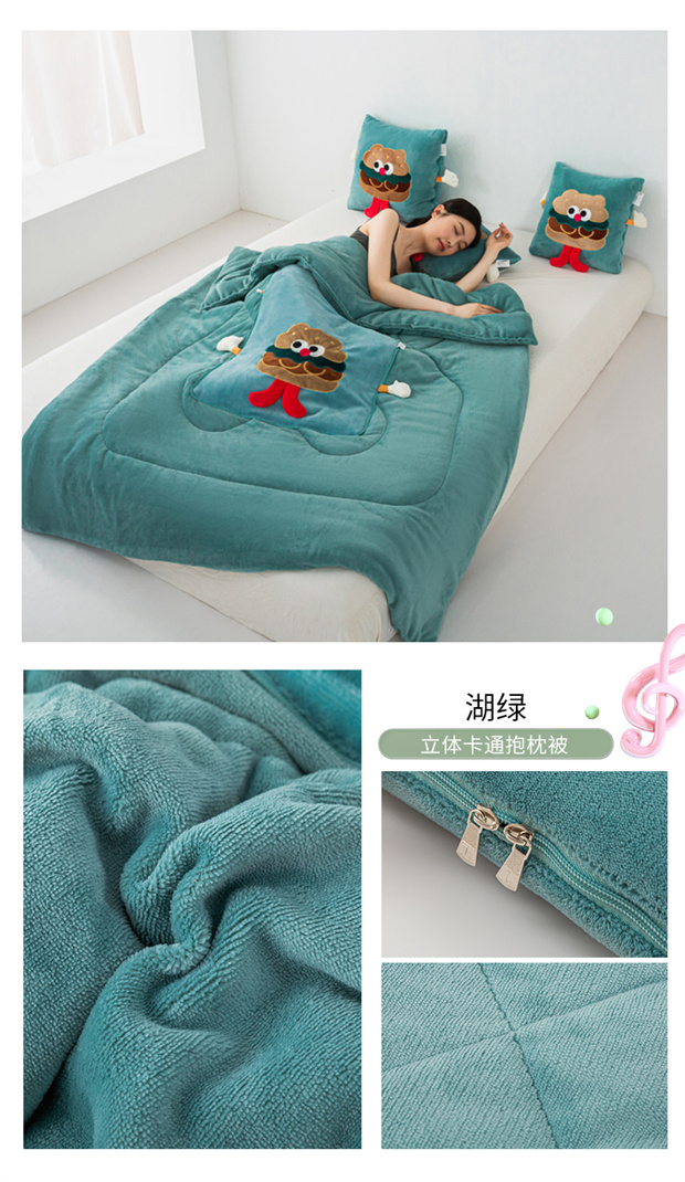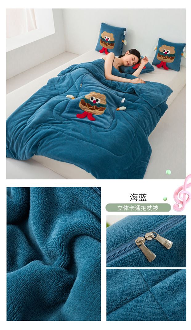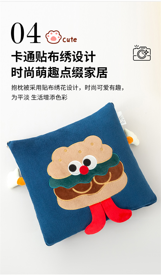 給您帶來全新的產品享受!牛奶絨面料色彩艷麗,持久光鮮!不褪色!毯子全部采n牛奶絨面料,柔軟質感,吸濕透氣, 舒適親膚,四季好用!所有的毯子都采用包邊工藝,支持機洗、水洗! 面料:牛奶絨 工藝:貼布繡 規格: 被子110*150cm,抱枕尺寸40*40cm