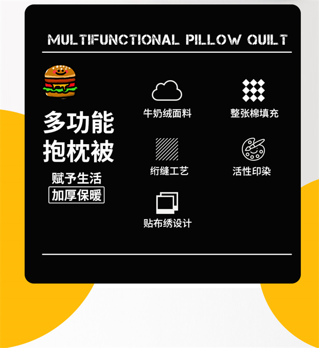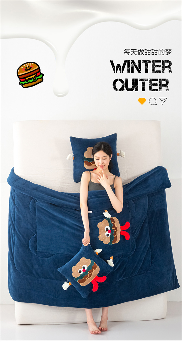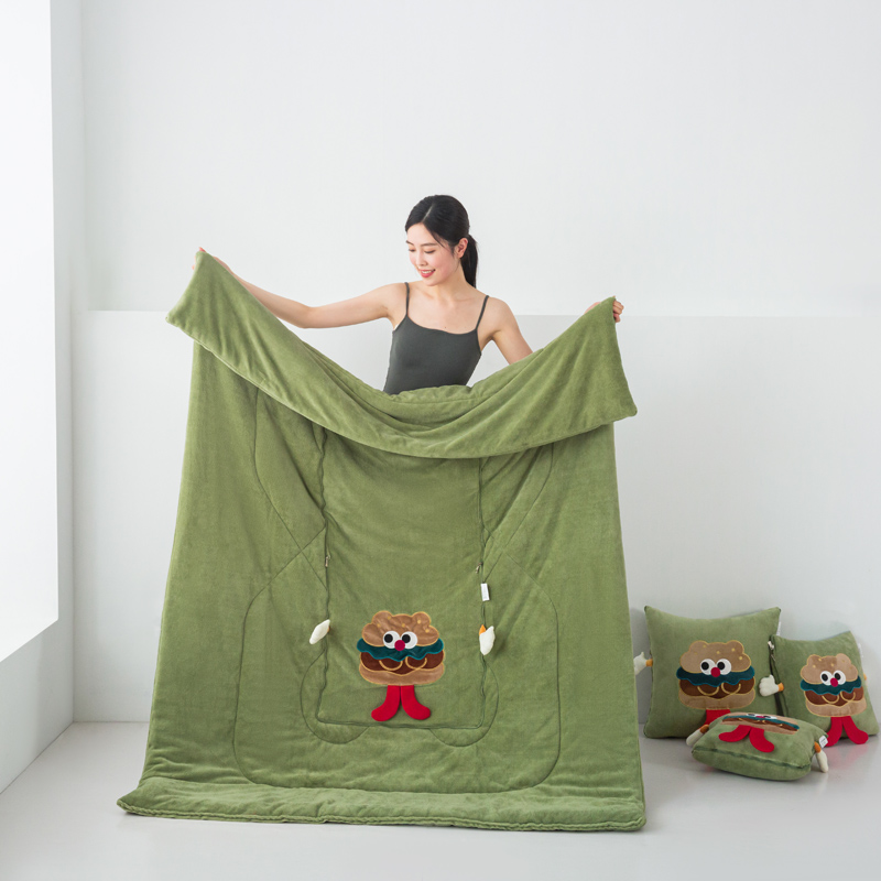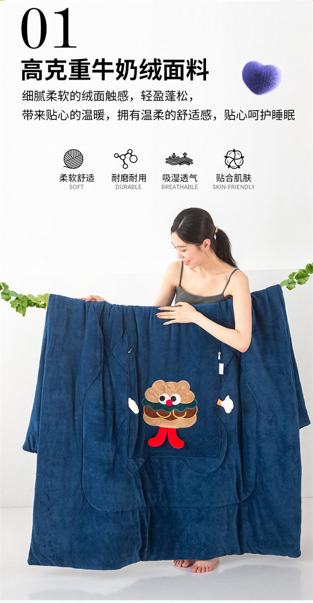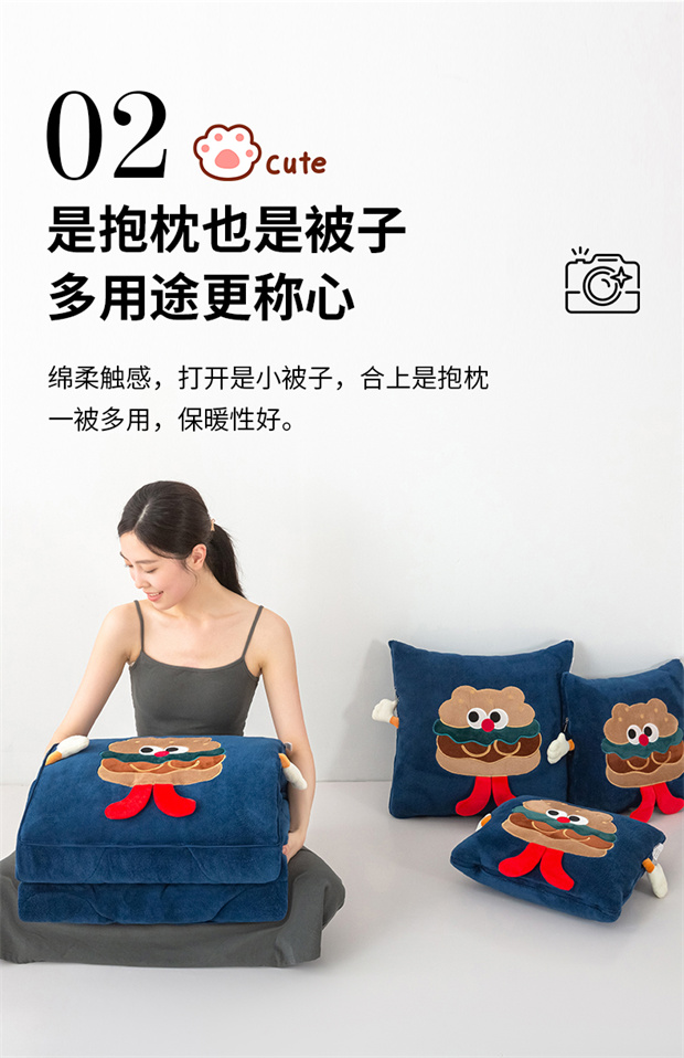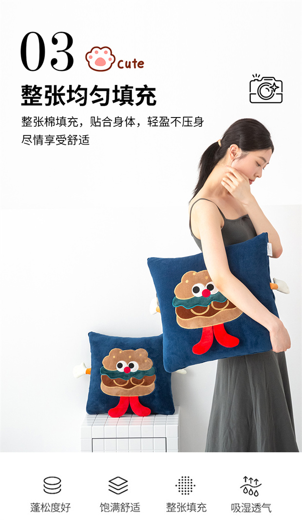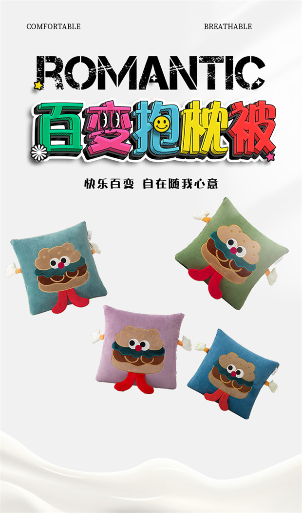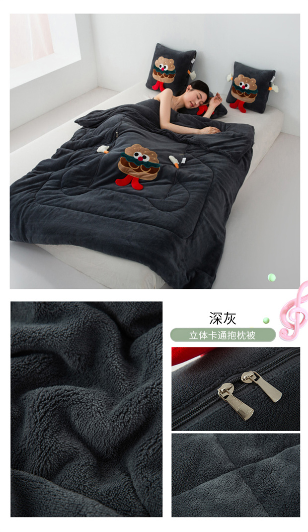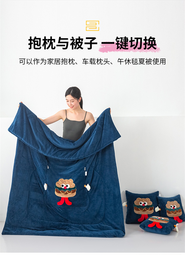 給您帶來全新的產品享受!牛奶絨面料色彩艷麗,持久光鮮!不褪色!毯子全部采n牛奶絨面料,柔軟質感,吸濕透氣, 舒適親膚,四季好用!所有的毯子都采用包邊工藝,支持機洗、水洗! 面料:牛奶絨 工藝:貼布繡 規格: 被子110*150cm,抱枕尺寸40*40cm